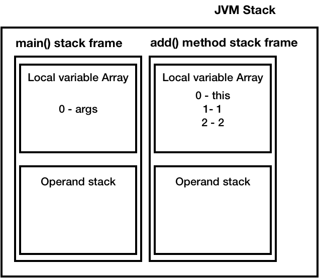 Java Threads(Java Stack): 각각의 Thread가 시작될때 생성되는 역역이고 Stack 형식(Stack Frame)을 저장하는 영역이다. method가 시작 할때 마다 하나의 stack fram이 생성되고 해당 Thread의 Java Statck 에 할당 된다. 그리고 method가 종료되면 stack fram에서 제거된다.