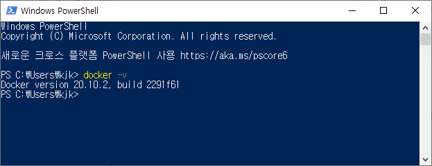 2. 설치가 긑나면 vscode 터미널이나 powershell 에서 도커 명령어를 입력하여 도커가 동작하는지 확인한다.