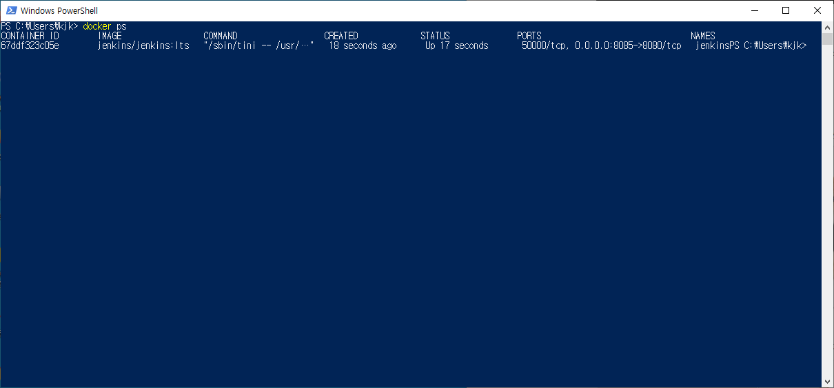 아래 명령어로 젠킨스 컨테이너의 로그를 확인 할 수 있습니다.