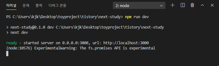 Next 프로젝트 설정은 제 블로그 에서 확인할 수 있습니다. jktech.tistory.com/44 Next.js(react) 프로젝트 시작 React의 SSR (server-side rendering) 프레임워크인 Next 프로젝트 환경: Windows, VScode, npm..